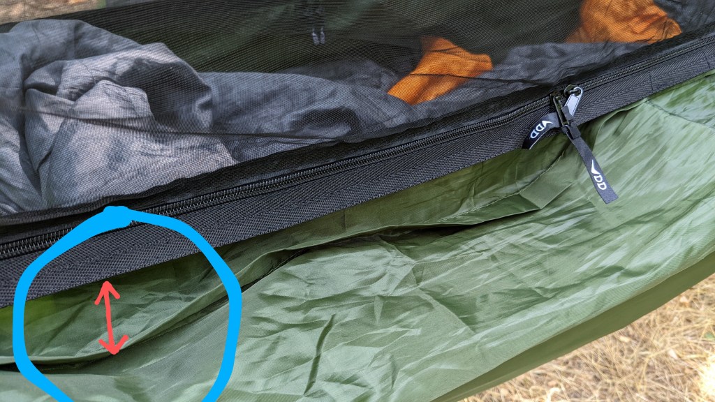 Un alt avantaj, pe care nu-l oferă multe alte branduri, este stratul dublu, ce permite introducerea unui izopren sau saltea. Acest aspect vine cu două vantaje: primul ar fi faptul că astfel hamacul poate fi folosit și când temperaturile nu sunt chiar așa de generoase, pentru că astfel nu ne va mai fi rece la spate, dar mai oferă și avantajul – cel puțin în ceea ce mă privește pe mine, cu salteaua mea – de a face hamacul și mai comod, pentru că-l ține ceva mai drept. Și că tot am menționat frigul, trebuie spus faptul că aceste hamace, de fapt, hamacele în general, pot fi utilizate și în sezonul rece. Există un fel de pături care se atașează pe exteriorul hamacelor, care au rolul de a conserva căldura. Cei de la DD pun la dispoziție astfel de paturi (quilts, în engleză). Tot iarna trebuie folosită și o tenda, eventual lăsată ceva mai jos, pentru acele situații în care este posibil să bată vântul rece din lateral.