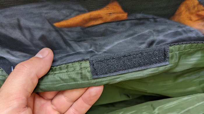 Pentru că nimic nu e perfect pe lumea asta, am să menționez și aspectele care lasă puțin de dorit. În primul rând, greutatea. Dintre toate, acesta este cel mai greu hamac în care am dormit până acum, motiv pentru care nu-i tocmai potrivit pentru ture de backpacking. Sau poate ar trebui să spun turele mele de backpacking. Eu l-am luat mai mult pentru ture ceva mai statice, road trip-uri, bikepacking și altele, dar dacă n-ai o problemă cu căratul (eu am, trebuie să recunosc), ai putea să-l iei și la rucsac. Nu uita, totuși, să pui în rucsac și o tendă, pentru situațiile în care este posibil să și plouă. Ei bine, dacă mai pui și o tendă, chingile, tot, vei ajunge undeva la 2kg (dar cred că volumul ocupat în rucsac va fi ceva mai mare decât cel al unui cort de 2kg). Pentru unii poate e chiar puțin, dar având în vedere că in majoritatea nopților eu dorm într-un cort de-o singură persoană care are 800g cu tot cu cuie, pentru mine e un deal-breaker, să spun așa. Deci rămân la ce spuneam că-l folosesc. Ce nu-mi mai place? Ei bine, faptul că teaca pentru saltea se accesează prin lateral și că, în loc să vină tot cu fermoar, vine cu trei puncte în care se prinde cu velcro. Nu știu cum gândesc alții, dar eu cred că ariciul n-are ce caută în imediată apropiere a unei plase. Pur și simplu astea luate împreună nu fac casă bună și deja am observat că începe să se agațe în plasă și nu numai. Un fermoar poate ar fi fost mult mai potrivit. Sau, dacă acesta ar fi adăugat ceva greutate, o soluție elegantă ar fi fost o deschidere undeva în spate, cum avea cel de la Amazonas. În felul asta ar fi fost și ceva mai ușor să pui fix în mojloc salteaua, pentru a fi totul echilibrat.