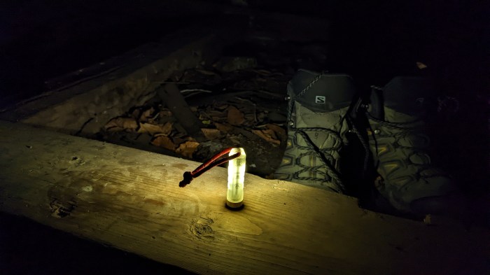 Până la strâmtura Cozei, unde te așteaptă niște formațiuni geologice cât se poate de interesante, nu prea e mare lucru de văzut (prinzându-ne întunericul încă de pe la intrarea în traseu, noi nu le-am văzut nici pe alea prea bine, dar măcar ne-am bucurat de apariția lunii). Aici traseul este anost, mai mult prin sat, iar odată părăsit, forestierele și lucrările din albia răului (n-am înțeles pentru ce) au știrbit un pic din farmecul zonei. Plecând târziu din București, planul era ca prima noapte s-o petrecem la poiana de la stâna Tătaru, o mică construcție aflată undeva în traseu, care chiar pare să fi servit cândva drept stână, loc unde știam că o să găsim și apă (btw, dacă nu ești atent, ratezi locul cu apa, aflat lângă un copac din potecă, dar pe de altă parte, mulți nici nu știu dacă s-ar încumeta să bea de acolo). Apa asta este al nabii de importantă în ture lungi (dar, hey, când nu este?), mai ales când nu vrei să cari prea multă și când mai toată mâncarea ta se bazează pe ea. Ca să nu car din timp, vreau ca la locul de campare să am o sursă de apă.