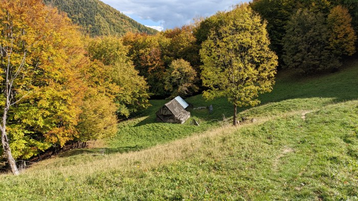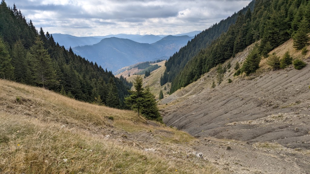 Și uite că vine și ziua cu numărul trei, mai lungă și cu o necunoscută legată de locul în care urma să dormim. Sau să campăm, de ce nu? Cineva de la refugiul Vidreni, veteran al colindatului prin acești munți, ne-a spus că ar fi un refugiu și pe undeva prin zona Șeii Tișiței, dar nu înțelesesem prea bine dacă e un refugiu turistic ca toate celelalte sau doar un canton care are și o camera deschisă drept refugiu. Undeva în mintea mea se produsese o confuzie în sensul ăsta. Știam de cantonul respectiv, dar țineam minte că era închis când am trecut pe la el. În fine, planul era să ajungem în zonă și de acolo să vedem noi ce e de făcut. În această nouă zi soarele ne-a cam părăsit și, odată cu el, și căldura aceea ca de vară, și asta fix când începeau peisajele și culorile să fie unele cât se poate de spectaculoase, care se cereau pozate insistent. Dar nu-i nimic, moralul rămâne la fel de ridicat, o mai ieși el, soarele, și cu alte ocazii.