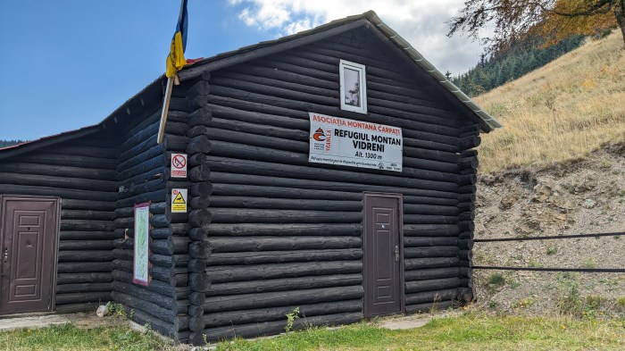 După ce facem ochi și coboram cu grijă scara podului, ne întâmpină un superb cer albastru. Din locul în care a dormit, Andu putea vedea direct afară, deci surpriză a fost doar pentru mine la coborârea din pod. Constatăm numaidecât că-i mult, mult mai cald decât ar fi trebuit să fie în această perioada din an. Practic, de pantaloni scurți, vară în toată regula. Foarte fain, ce să mai. Planul pentru această nouă zi era să ajungem la refugiul Vidreni, aflat doar la vreo 7km de locul unde trăsesem pentru prima noapte, dar până la care aveam ceva de urcat. Știindu-mi genunchii un pic avariați, am vrut ca primele două zile să fie foarte ușoare, mai mult de acomdare, și nici că se putea mai bine altfel, având în vedere mini-accidentarea lui Andu din Focșani. De asemenea, fiind weekend, luasem în calcul că s-ar putea să nu fim chiar singuri pe acolo, dar destul de mare fiind, cu etaj și tot ce trebuie, am zis că reușim noi să ne strecurăm pe undeva prin refugiu, indiferent câtă lume ar fi. La o adică, aveam și corturi, numai să găsim ceva cât de cât drept prin apropiere. Înainte de a o lua din loc de la stâna Tătaru, ne-a venit și confirmarea faptului că nu vom fi singuri la refugiu, pentru că începeau deja să urce turiști ceva mai matinali decât noi. Imediat ce terminăm cu micul dejun și ceaiul de hidratare, îi dăm și noi bătaie.