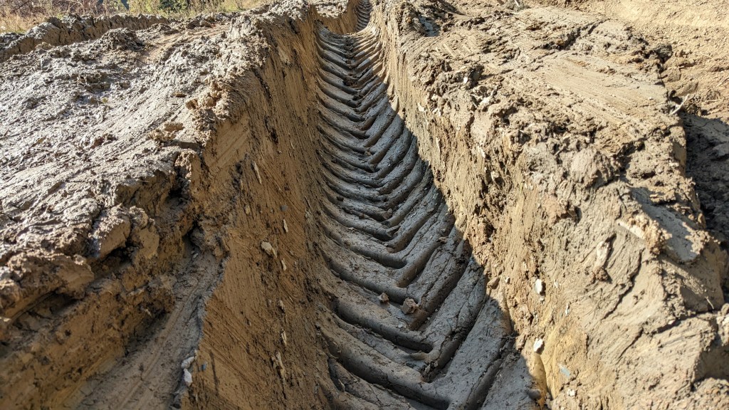 După o ce terminăm o porțiune de forestier parcursă pe cântece zbierate de Stihl și Husqvarna, poteca noastră face în sfârșit stânga și începe să urce către o zonă de belvedere, de unde pe stânga, către est, putem vedea o parte din forestierul lung ce șerpuiește către Năruja și unde încă se mai zărește ce-a mai rămas din fostul canton Izvoarele, acum mai mult o adunătură de bârne. Bucuria însă este de scurtă durata, pentru că intersectăm din nou forestierul, unde ne mai consolăm cu niște urme proaspete de urs în noroi. În continuare traseul nostru trece pe sub vârful Piscul cu Paltini, către care se pare că există o cărare judecând după ce-mi spune mie aplicația de navigare (dar pe care noi n-am văzut-o, dar pe care nici n-am căutat-o cu atenție), zonă în care sunt și ceva izvoare ce se pot dovedi utile. După aproximativ 1km, ieșim și într-o poiană cât se poate de drăguță. Imediat după, cam la 250m de poiană, se găsește un alt loc super simpatic, pe care mi l-am reamintit numaidecât de dată trecută, și anume o muchie pietruită, relativ îngustă, pe unde merge și poteca.