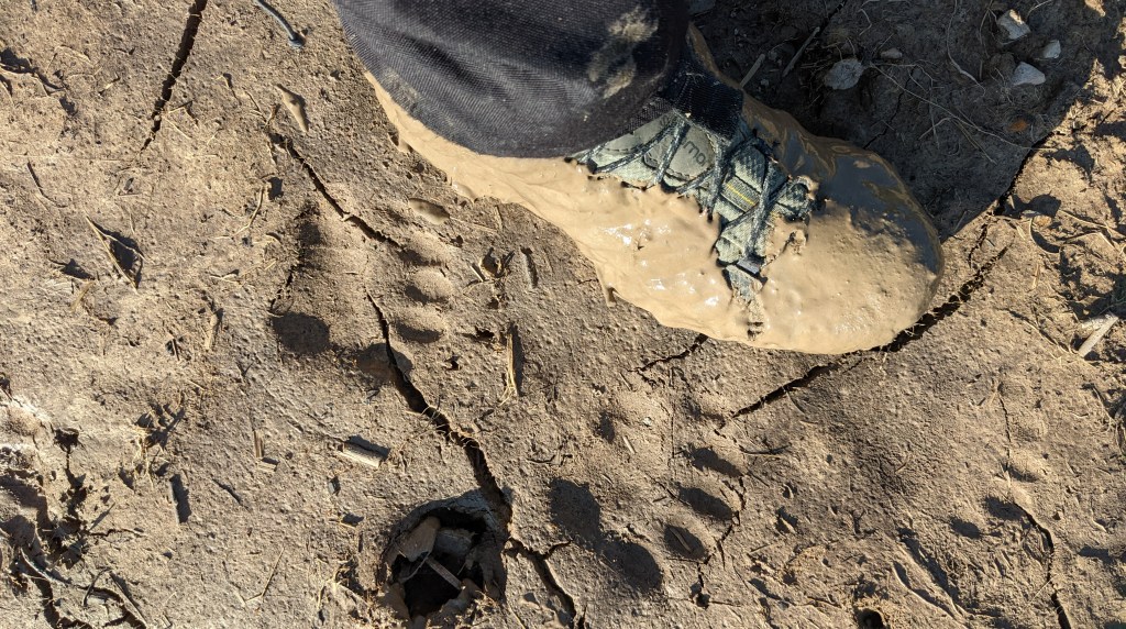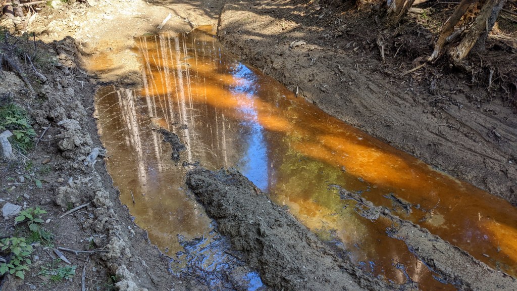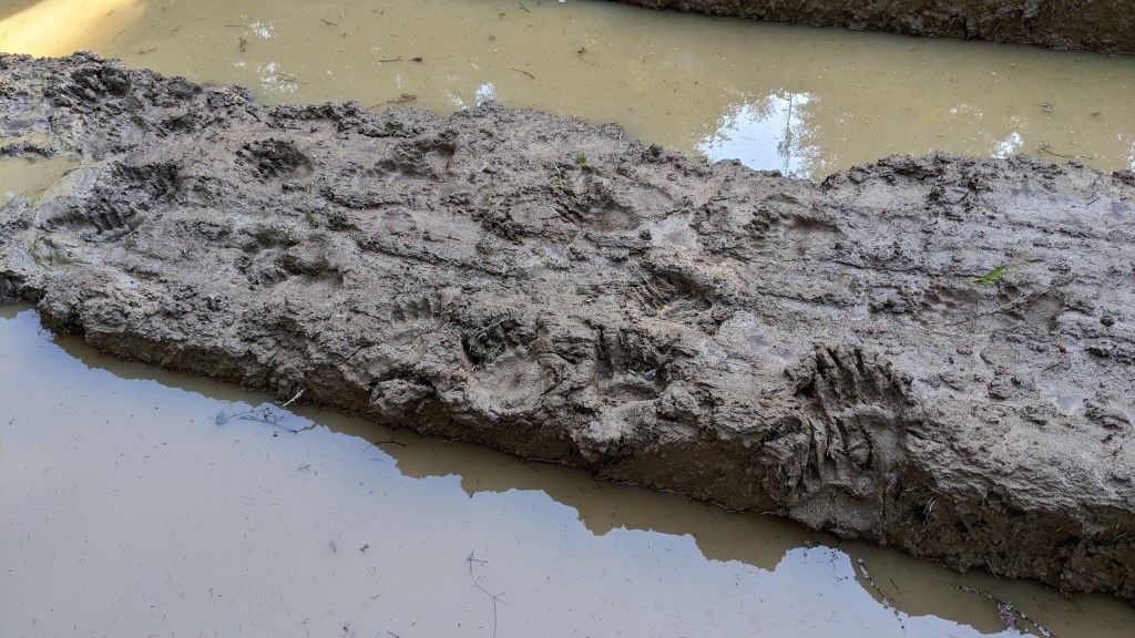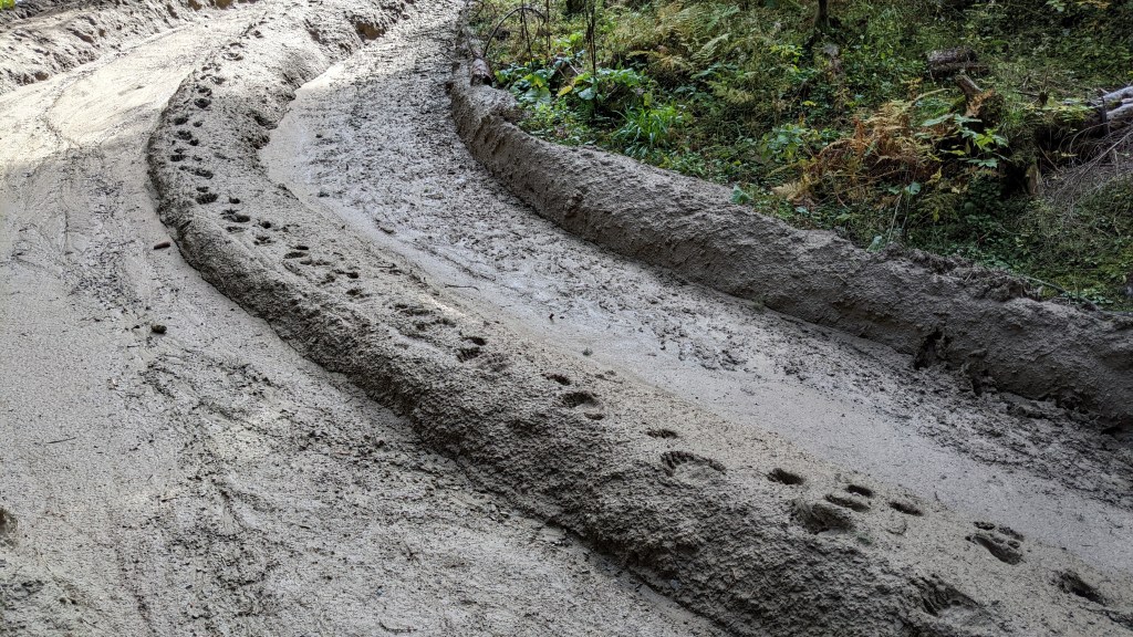 De aici luăm și apă, pentru că undeva în pădure, la câteva minute de stână, există un izvor foarte bun, ușor de ratat dacă nu știi de existența lui, așa că după o mică pauză de hidratare și o mică gustare la măsuța aflată fix lângă stână, ne continuăm drumul pe forestierele tot mai distruse de exploatări și unde, datorită noroiului foarte moale, aveam să ne batem și propriile recorduri la urme de urs pe metru pătrat văzute.