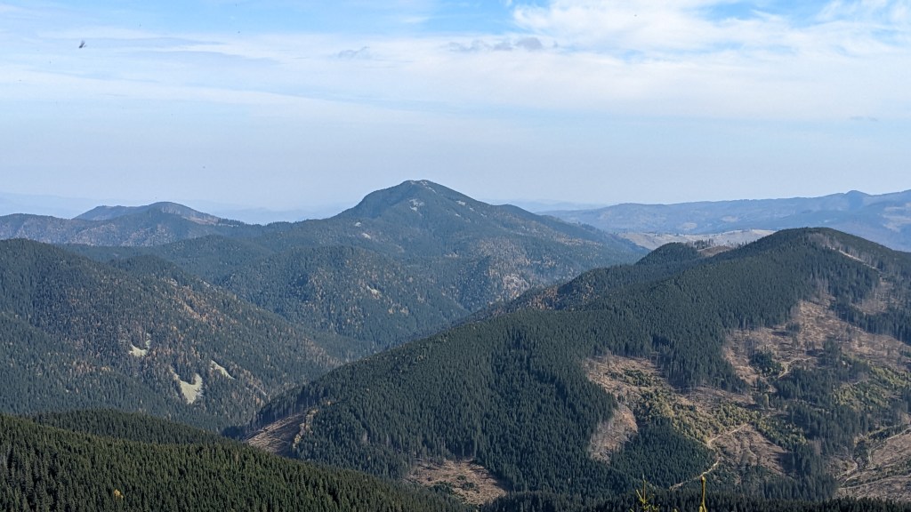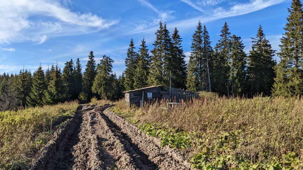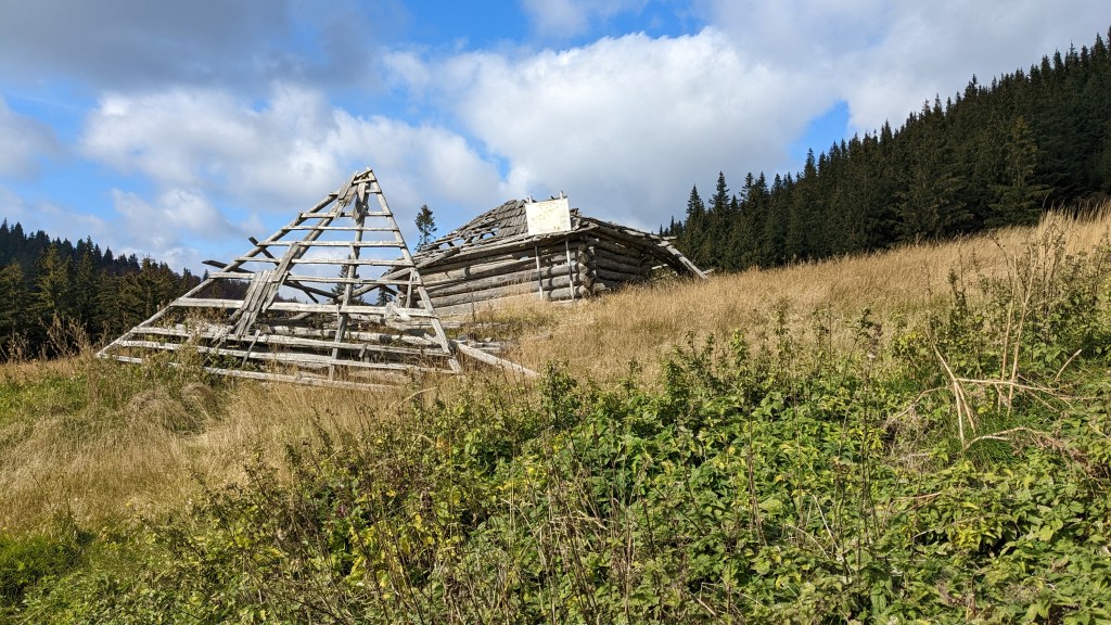 Pentru că vârful Goru ne-a tot ademenit încă din poiana aflată în apropierea vârfului Mîrdanu, am zis că trebuie să găsim o varianta pentru a-l marca și pe el în tura asta, chiar dacă asta presupunea să dormim la Lăcăuți pentru încă o noapte, pentru că toate calculele se sfârșeau cu finalul la Comandău, o mică localitate închegată în jurul exploatărilor forestiere, aflată în județul Covasna. Goru este cel mai înalt vârf din munții Vrancei, la cei 1785m ai săi, deci era cu neputință să-l ratăm. Decidem că cea mai bună variantă pentru a duce la bun sfârșit treaba asta ar fi să lăsăm rucsacii la stația meteo și să mergem cât se poate de light către vârf. Și bine am făcut, pentru că, deși traseul este destul de scurt (undeva la 12km dus-întors, dacă nu greșesc), s-a dovedit a fi foarte dificil de parcurs. Din nou, șleaurile de TAF și buldozer, noroaiele apoase de zici că se mutaseră aici toți vulcanii de la Berca fix în drum, au făcut destul de dificil un traseu care altfel s-ar fi făcut într-un ritm mai mult decât lejer. Traseul trece și pe la stâna de sub Goru, unde cu altă ocazia am și rămas peste noapte, stână acum aproape înghițită de urzici și tot felul de alte bălării. Înăuntru, mă întreb dacă scândurile puse la punct de mine în 2018 pentru a face un prici lat de două persoane sunt tot acelea pe care le am în față ochilor. Îmi amintesc ce m-am muncit să scot cuiele de la scândurile alea folosind alte cuie, în ideea de a nu-mi înțepa saleaua (se pare că vorba aceea cu cui pe cui se scoate are un sâmbure de adevăr, totuși).